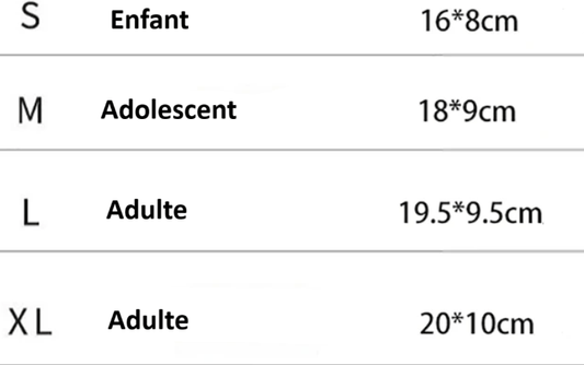 La taille idéale doit couvrir entièrement votre tibia, du dessus de la cheville jusqu'en dessous du genou. Mesurez la longueur de votre tibia et choisissez un modèle légèrement plus court pour garantir votre mobilité. Pour les enfants, il est important de changer régulièrement de taille au fur et à mesure de leur croissance.